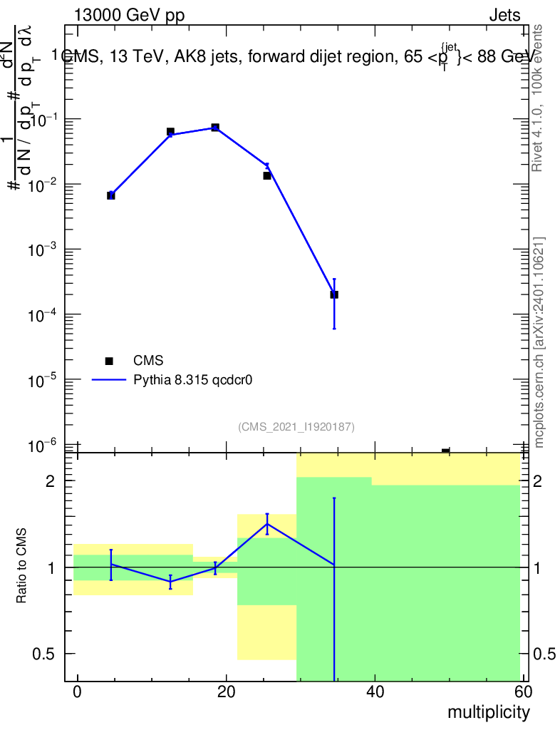 Lines: data, pythia8 8.315 qcdcr0 |