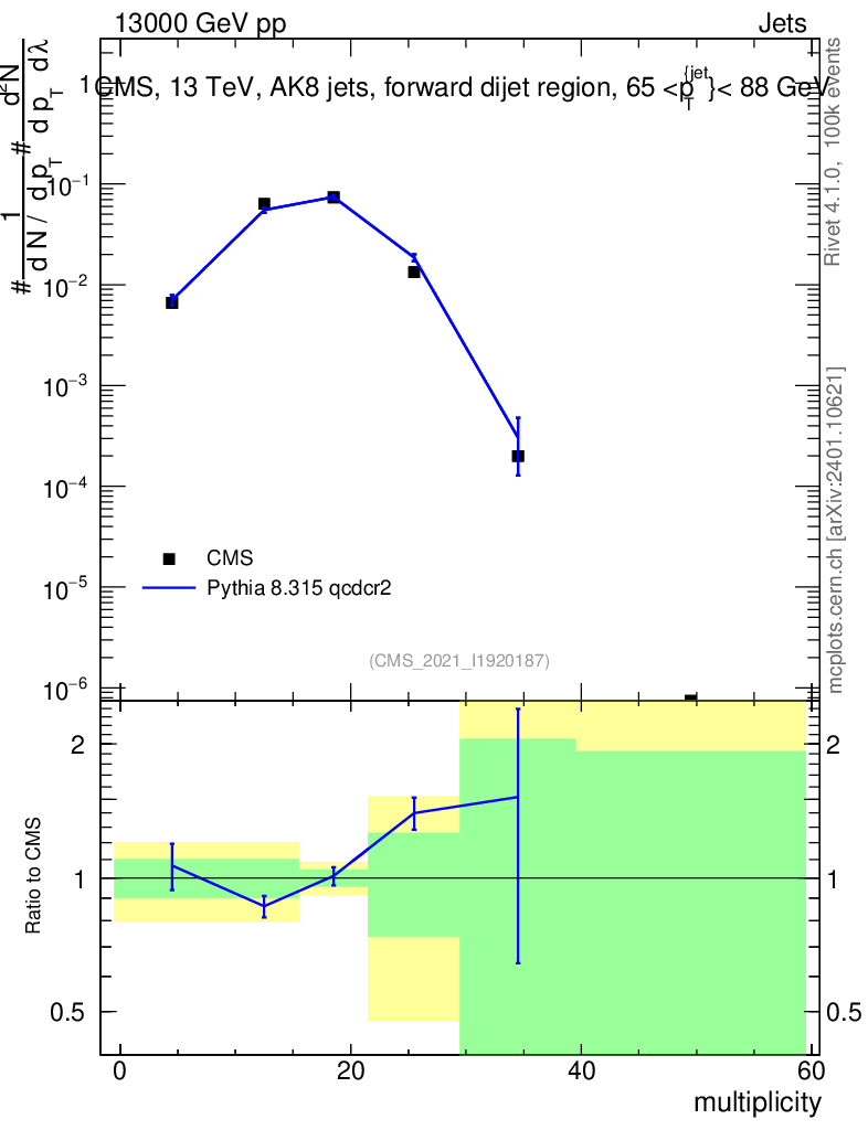Lines: data, pythia8 8.315 qcdcr2 |