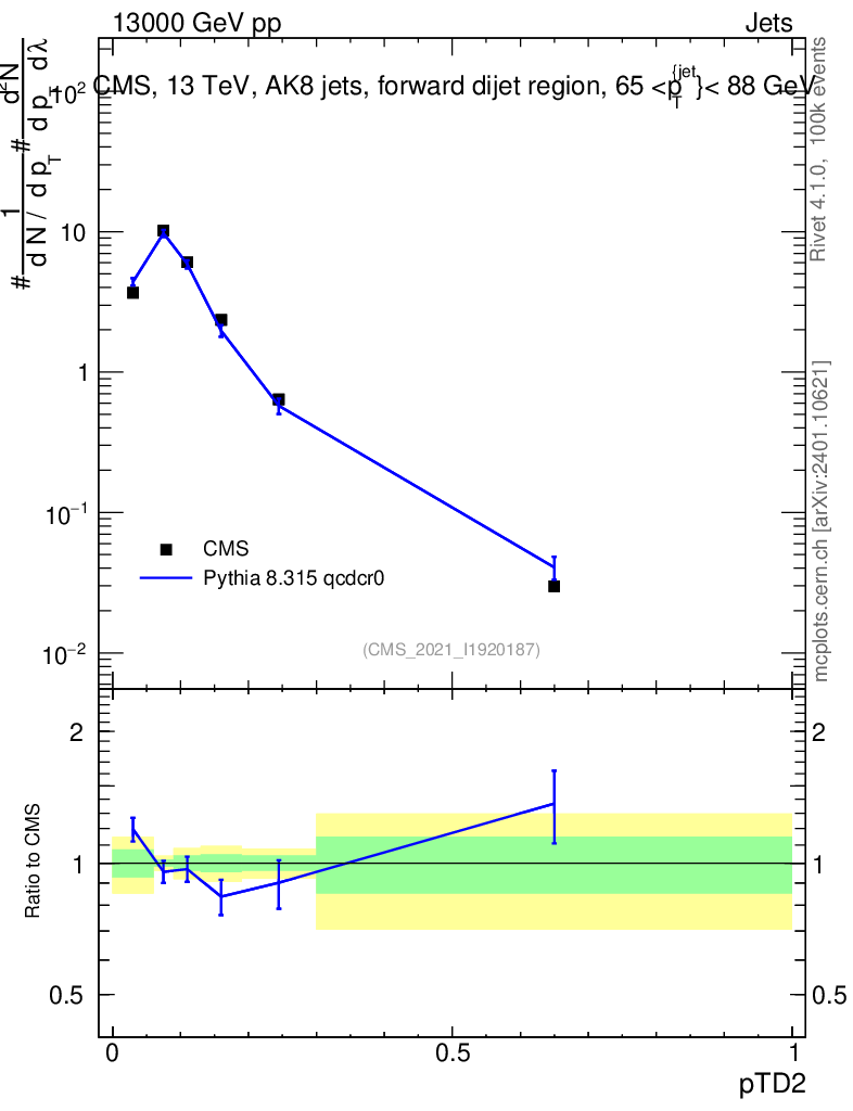 Lines: data, pythia8 8.315 qcdcr0 |
