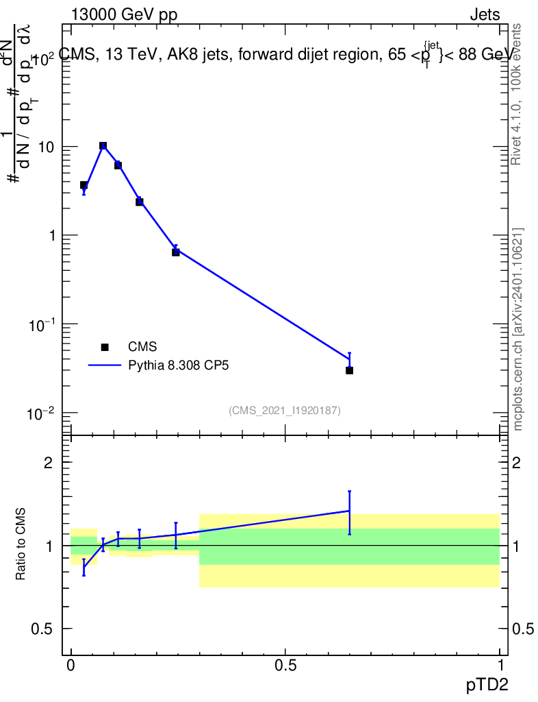 Lines: data, pythia8 8.308 CP5 |