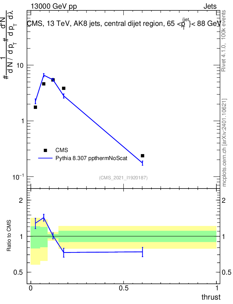 Lines: data, pythia8 8.307 ppthermNoScat |