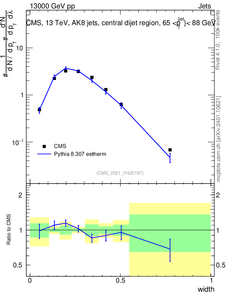 Lines: data, pythia8 8.307 eetherm |