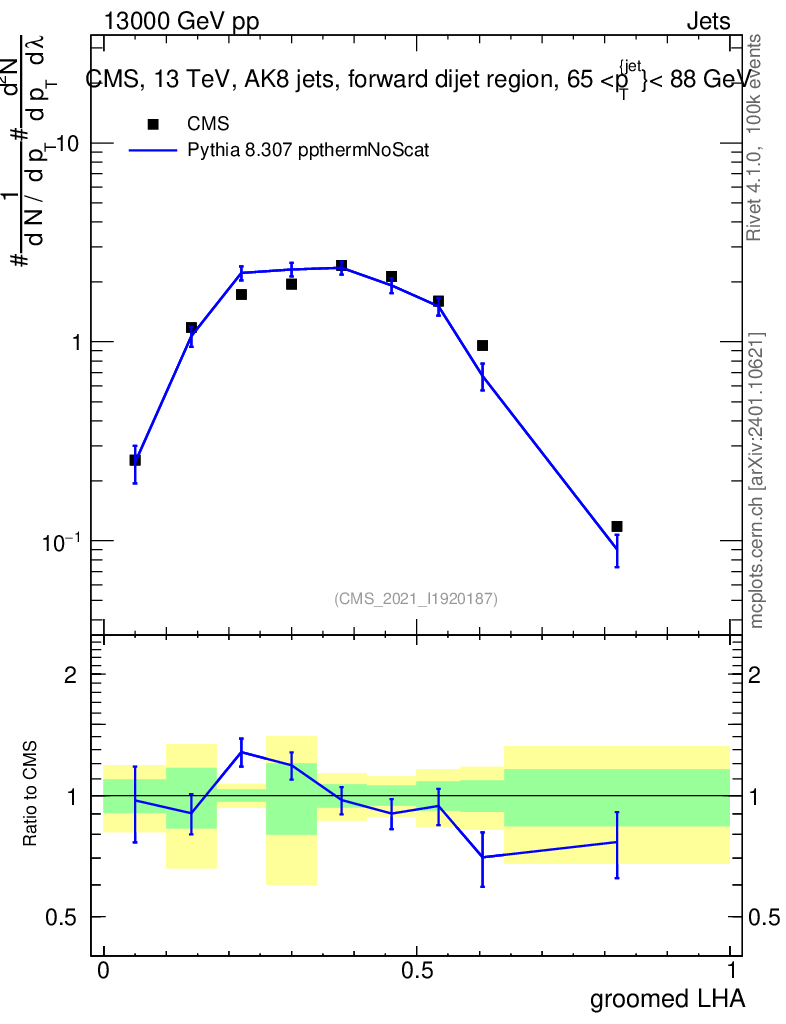 Lines: data, pythia8 8.307 ppthermNoScat |