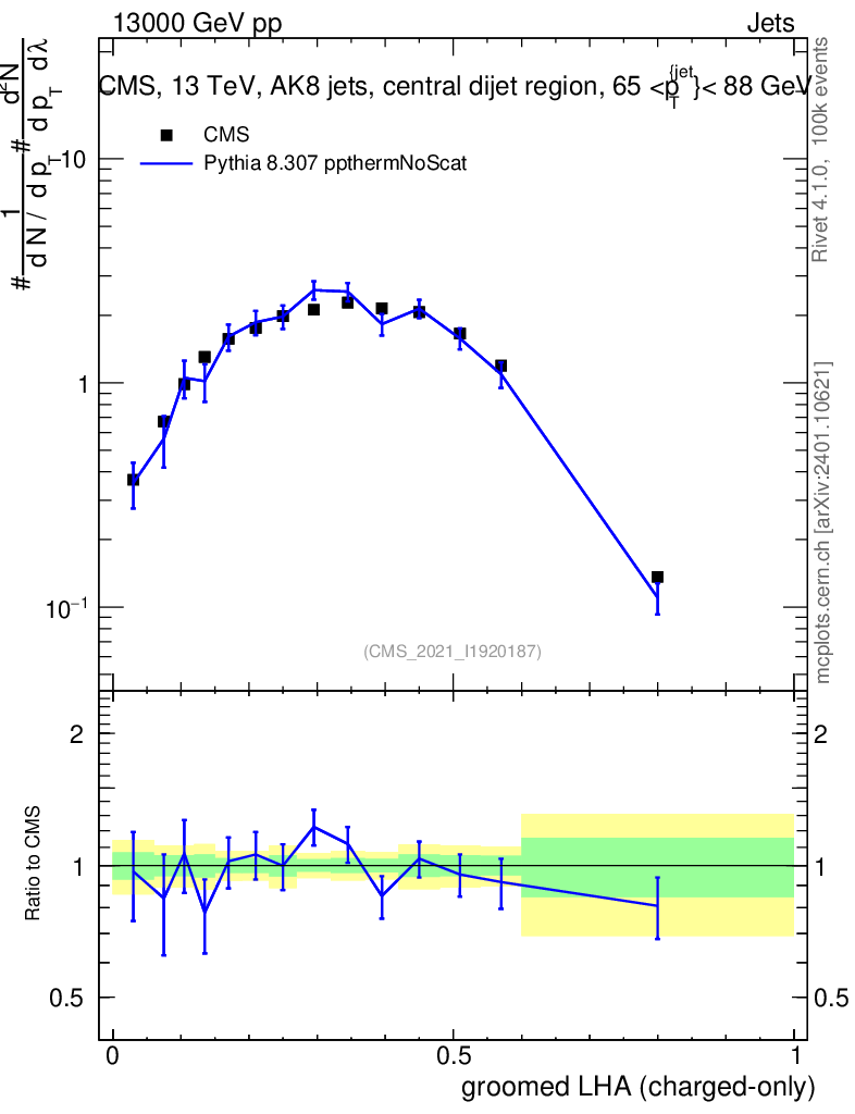 Lines: data, pythia8 8.307 ppthermNoScat |