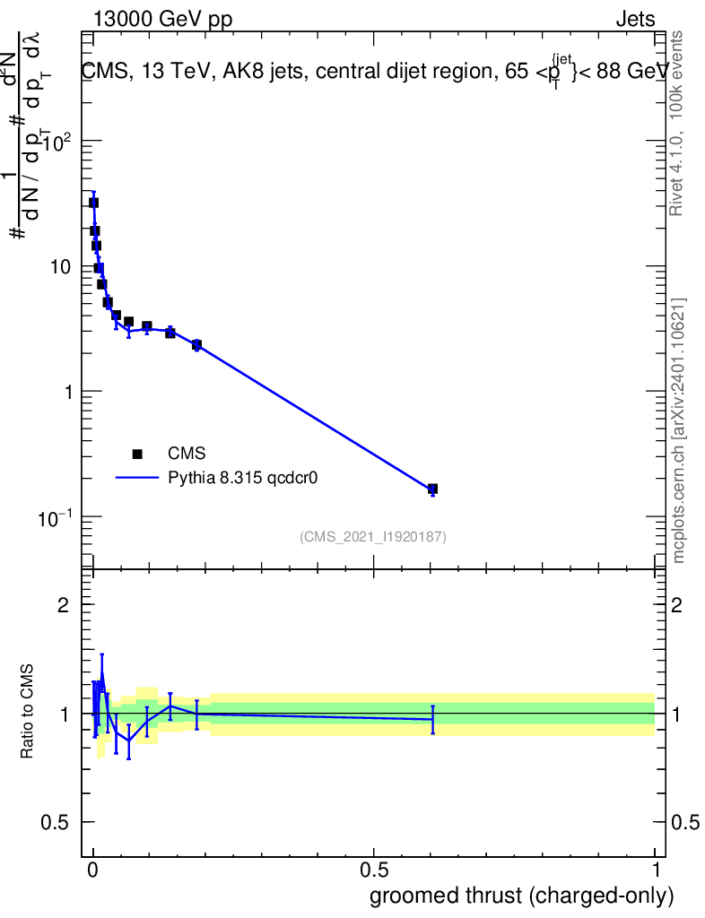 Lines: data, pythia8 8.315 qcdcr0 |