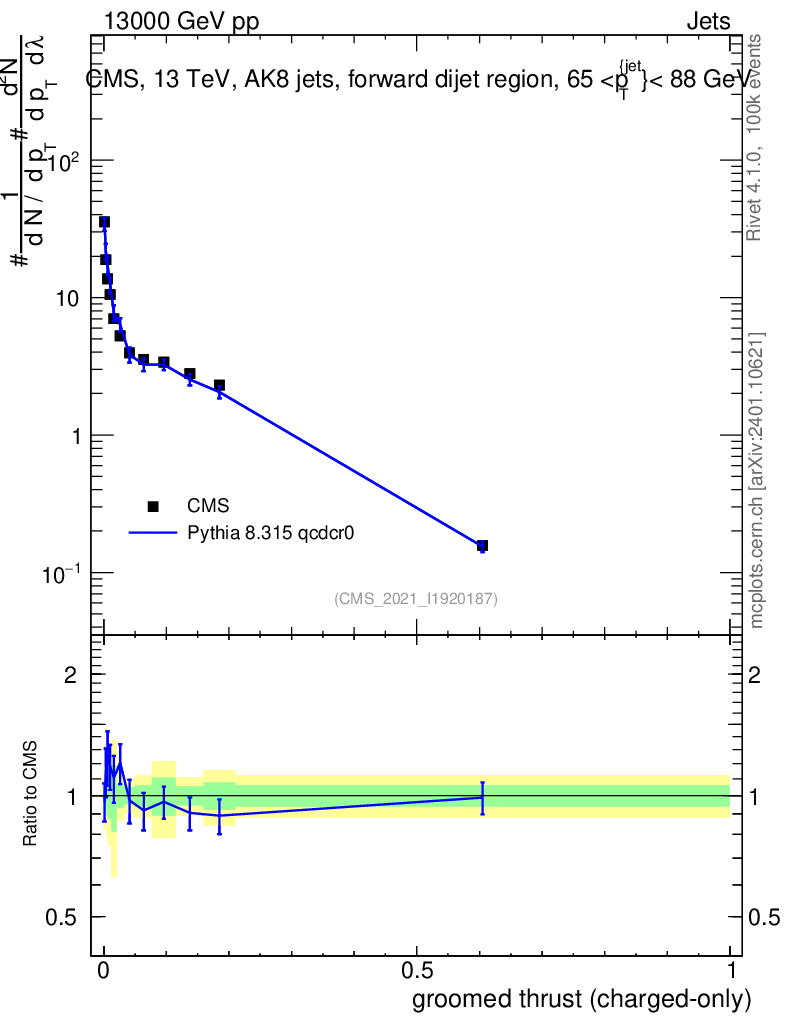 Lines: data, pythia8 8.315 qcdcr0 |