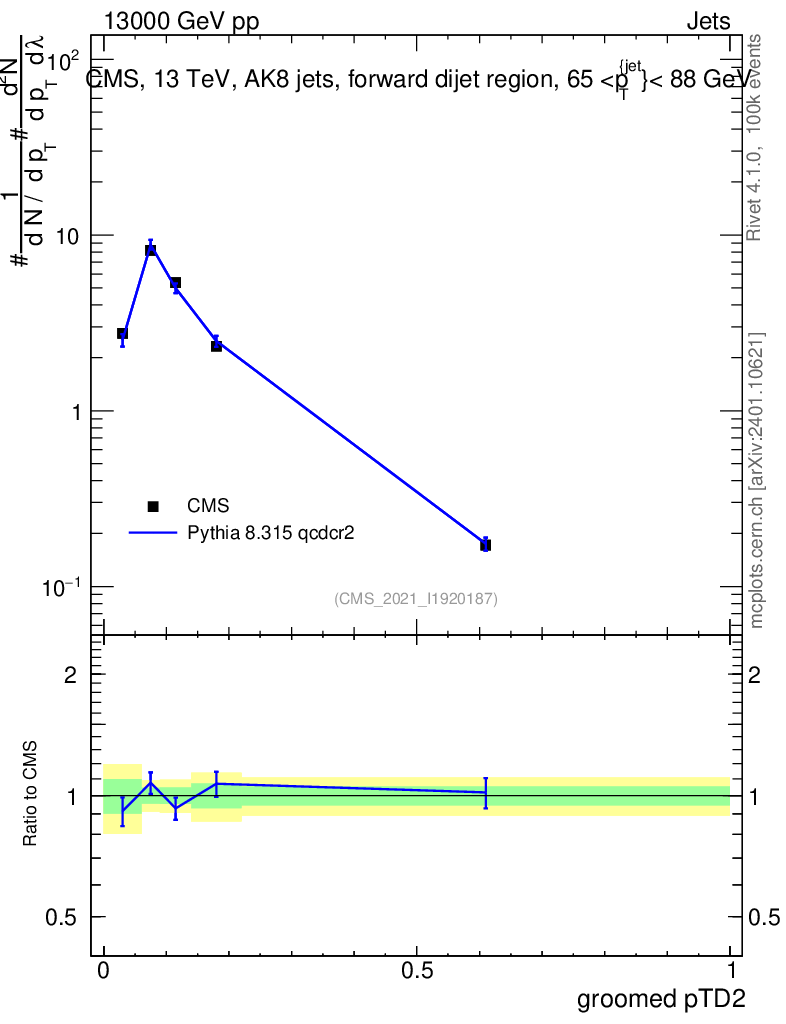 Lines: data, pythia8 8.315 qcdcr2 |