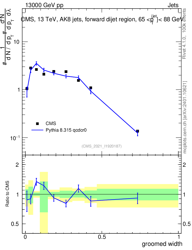 Lines: data, pythia8 8.315 qcdcr0 |