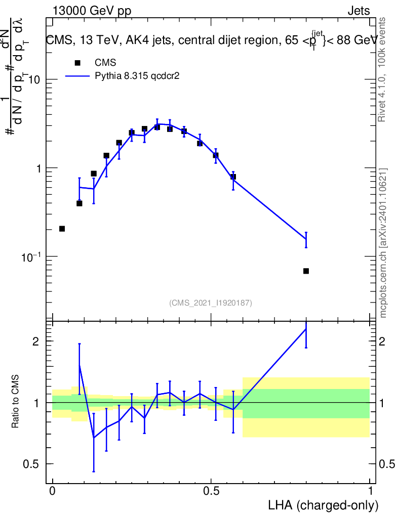 Lines: data, pythia8 8.315 qcdcr2 |