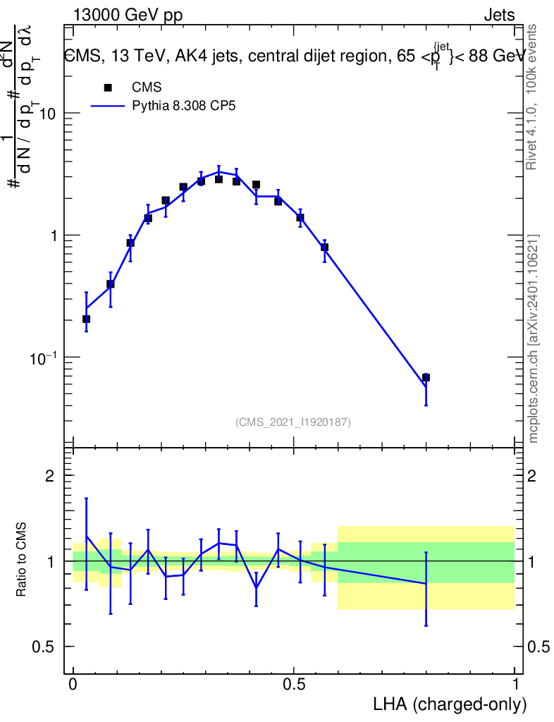 Lines: data, pythia8 8.308 CP5 |