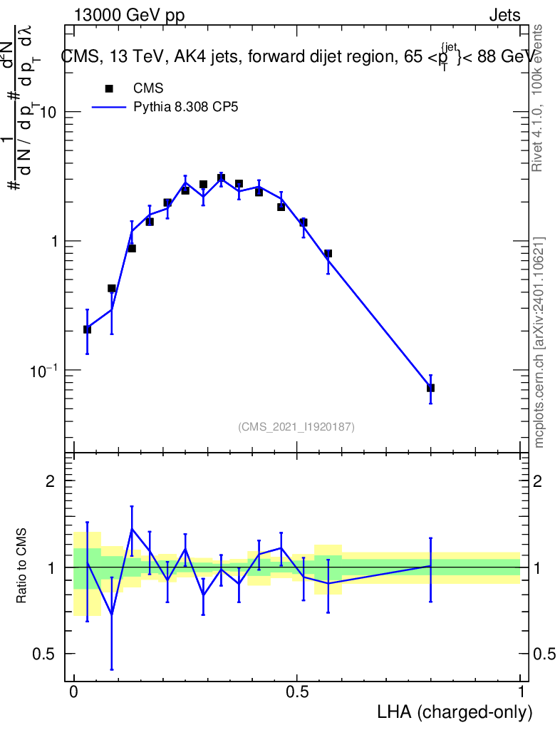 Lines: data, pythia8 8.308 CP5 |