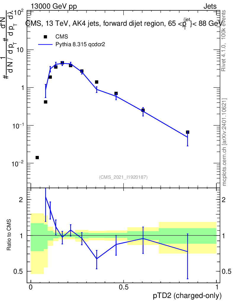 Lines: data, pythia8 8.315 qcdcr2 |
