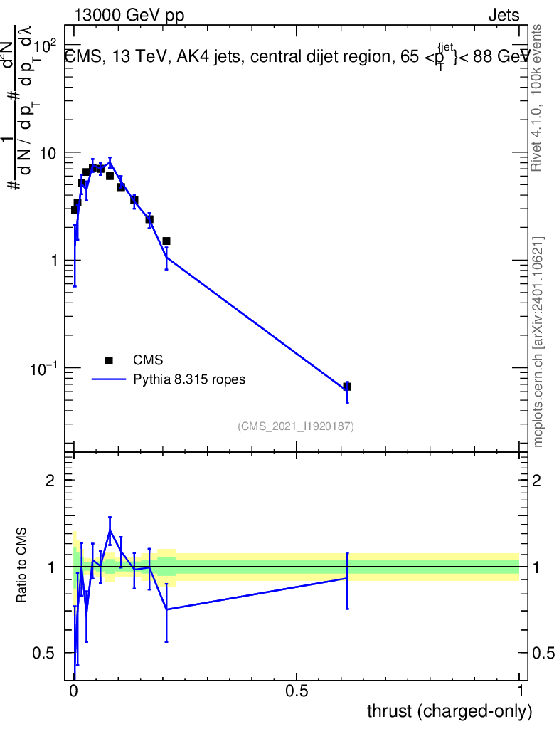 Lines: data, pythia8 8.315 ropes |