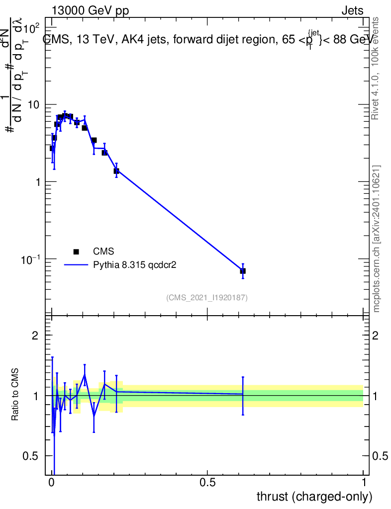 Lines: data, pythia8 8.315 qcdcr2 |