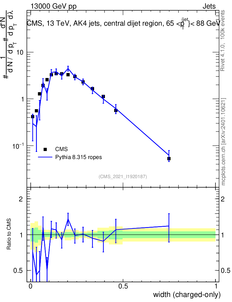 Lines: data, pythia8 8.315 ropes |