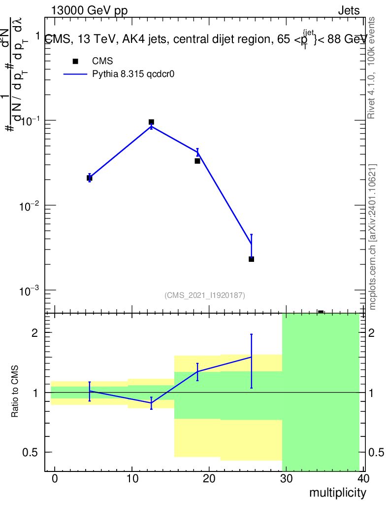 Lines: data, pythia8 8.315 qcdcr0 |