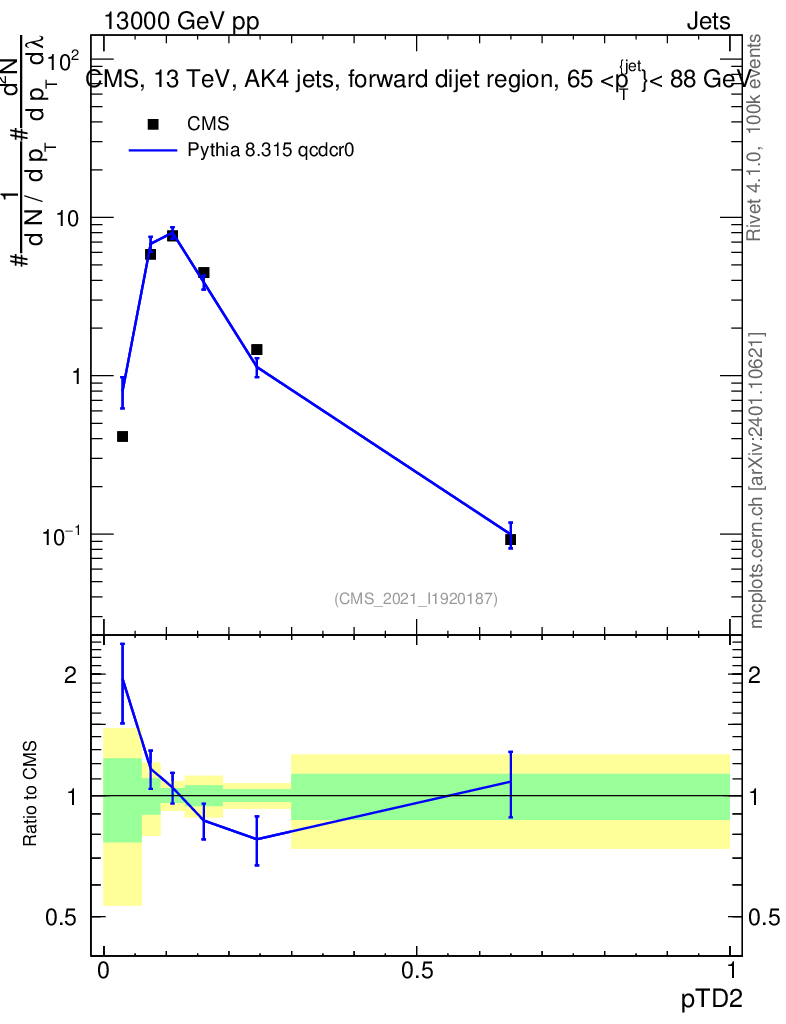 Lines: data, pythia8 8.315 qcdcr0 |