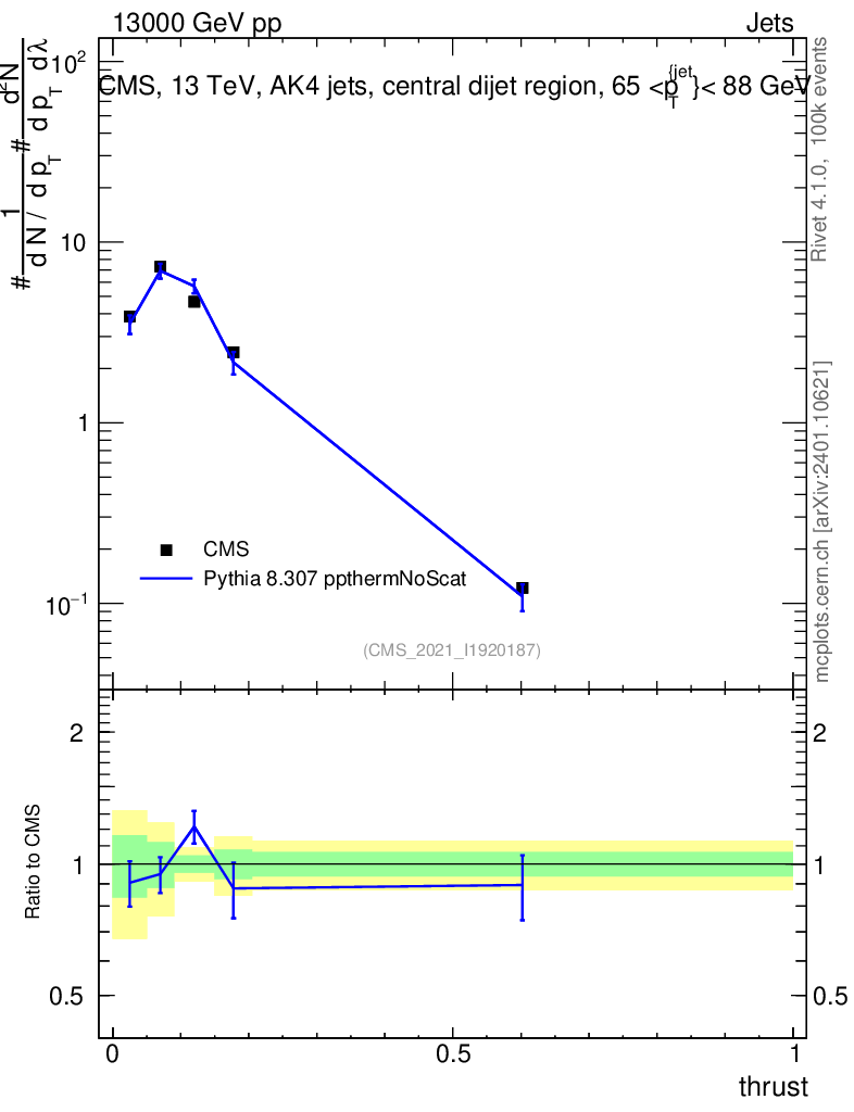 Lines: data, pythia8 8.307 ppthermNoScat |