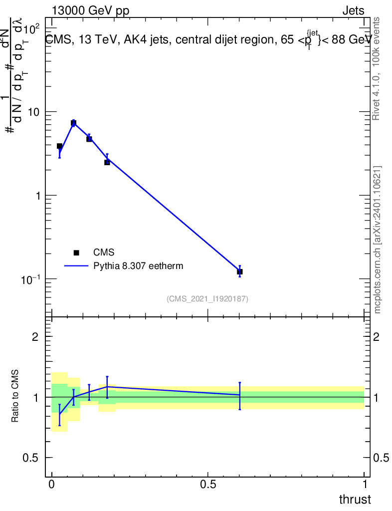 Lines: data, pythia8 8.307 eetherm |