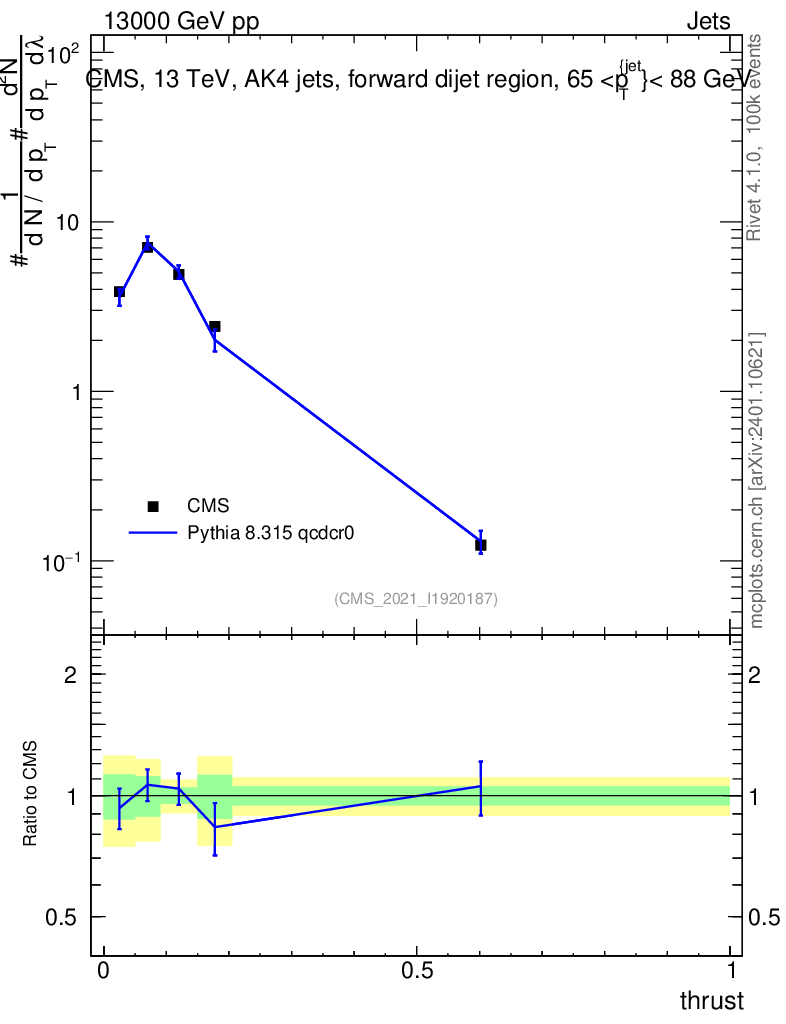 Lines: data, pythia8 8.315 qcdcr0 |