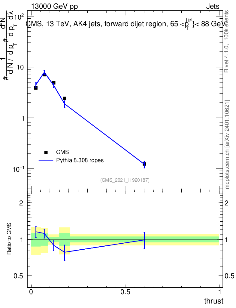 Lines: data, pythia8 8.308 ropes |