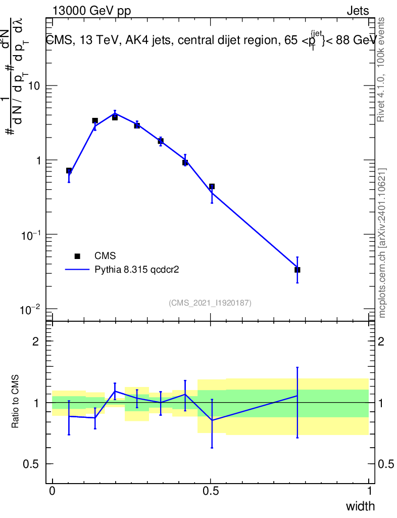 Lines: data, pythia8 8.315 qcdcr2 |