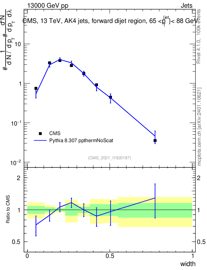 Lines: data, pythia8 8.307 ppthermNoScat |