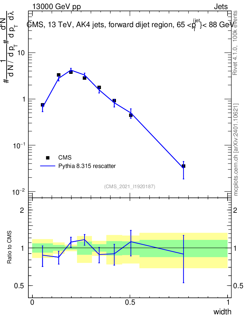 Lines: data, pythia8 8.315 rescatter |