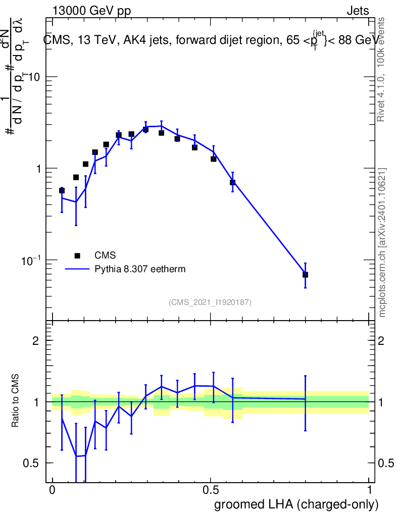 Lines: data, pythia8 8.307 eetherm |