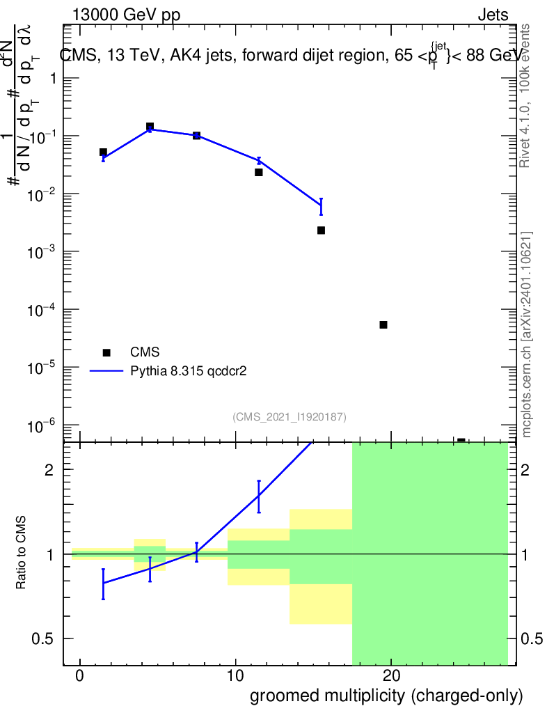 Lines: data, pythia8 8.315 qcdcr2 |