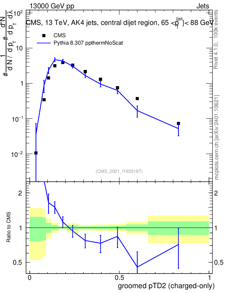 Lines: data, pythia8 8.307 ppthermNoScat |