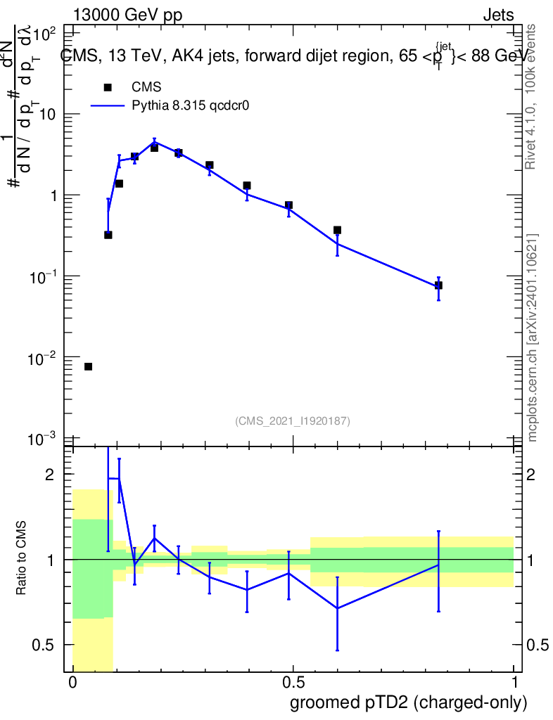Lines: data, pythia8 8.315 qcdcr0 |