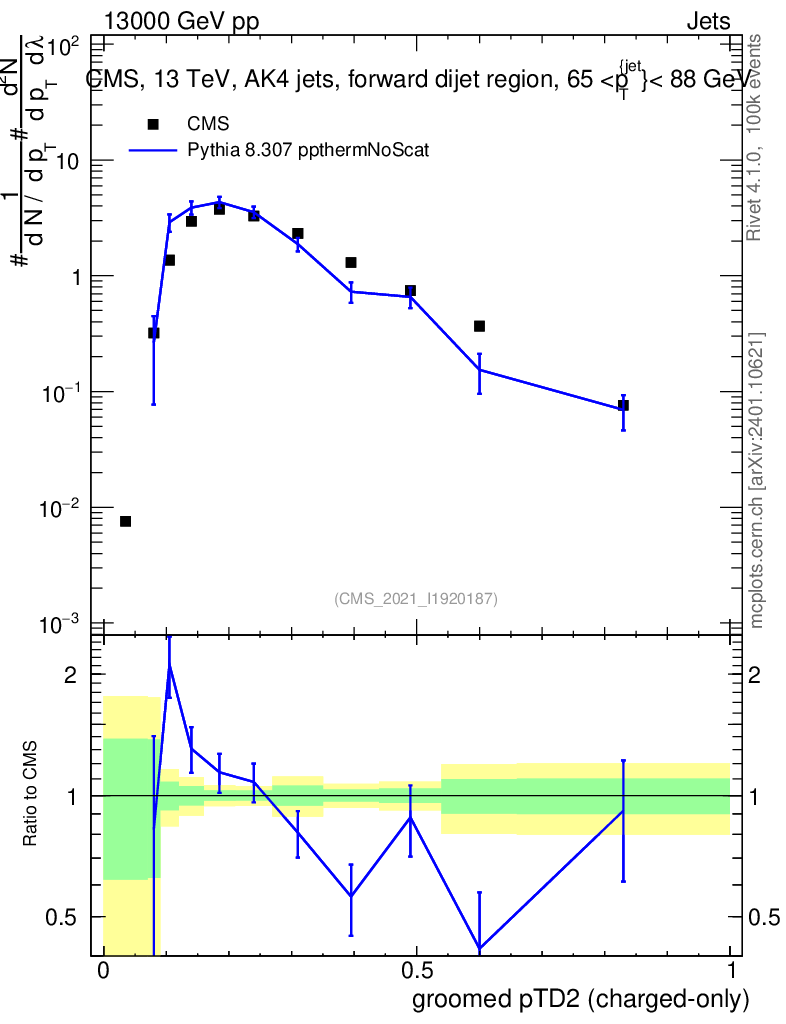Lines: data, pythia8 8.307 ppthermNoScat |