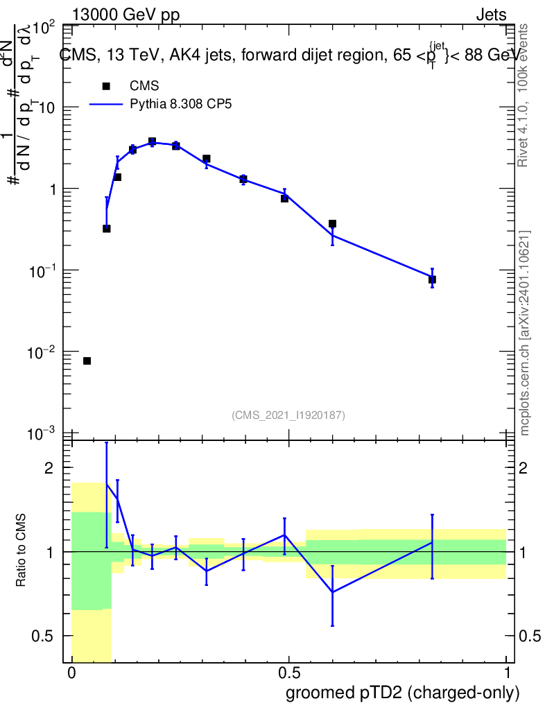 Lines: data, pythia8 8.308 CP5 |