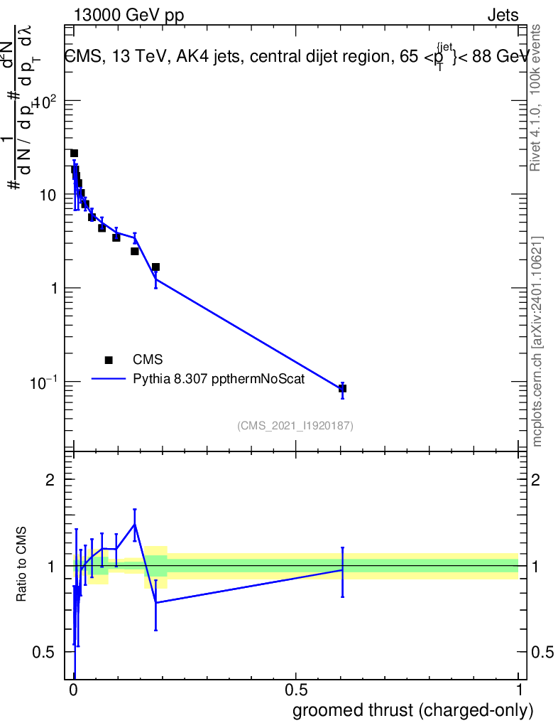 Lines: data, pythia8 8.307 ppthermNoScat |