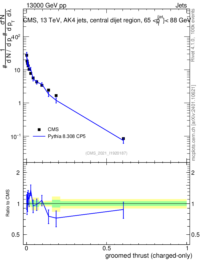 Lines: data, pythia8 8.308 CP5 |