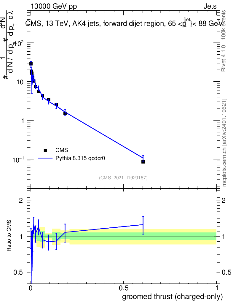 Lines: data, pythia8 8.315 qcdcr0 |