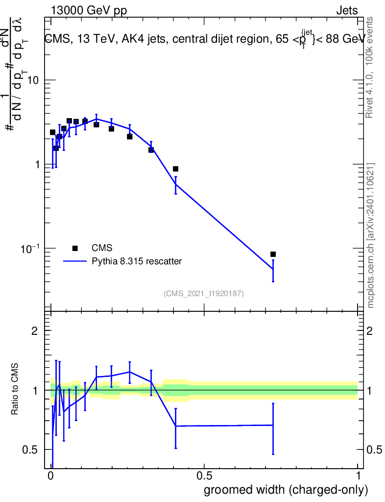 Lines: data, pythia8 8.315 rescatter |