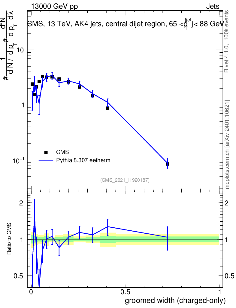 Lines: data, pythia8 8.307 eetherm |