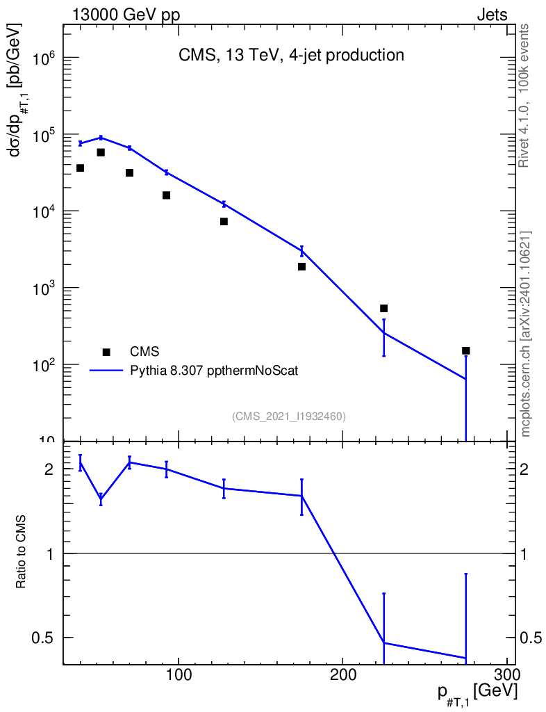 Lines: data, pythia8 8.307 ppthermNoScat |