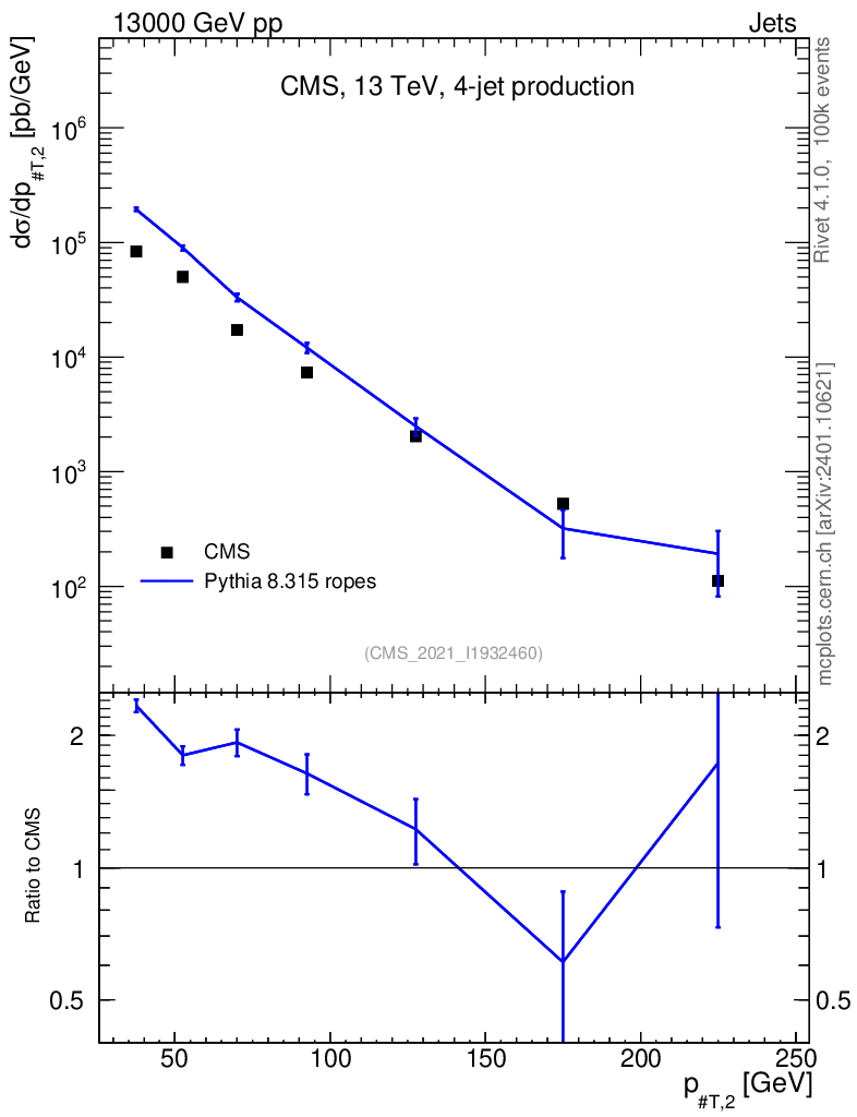 Lines: data, pythia8 8.315 ropes |