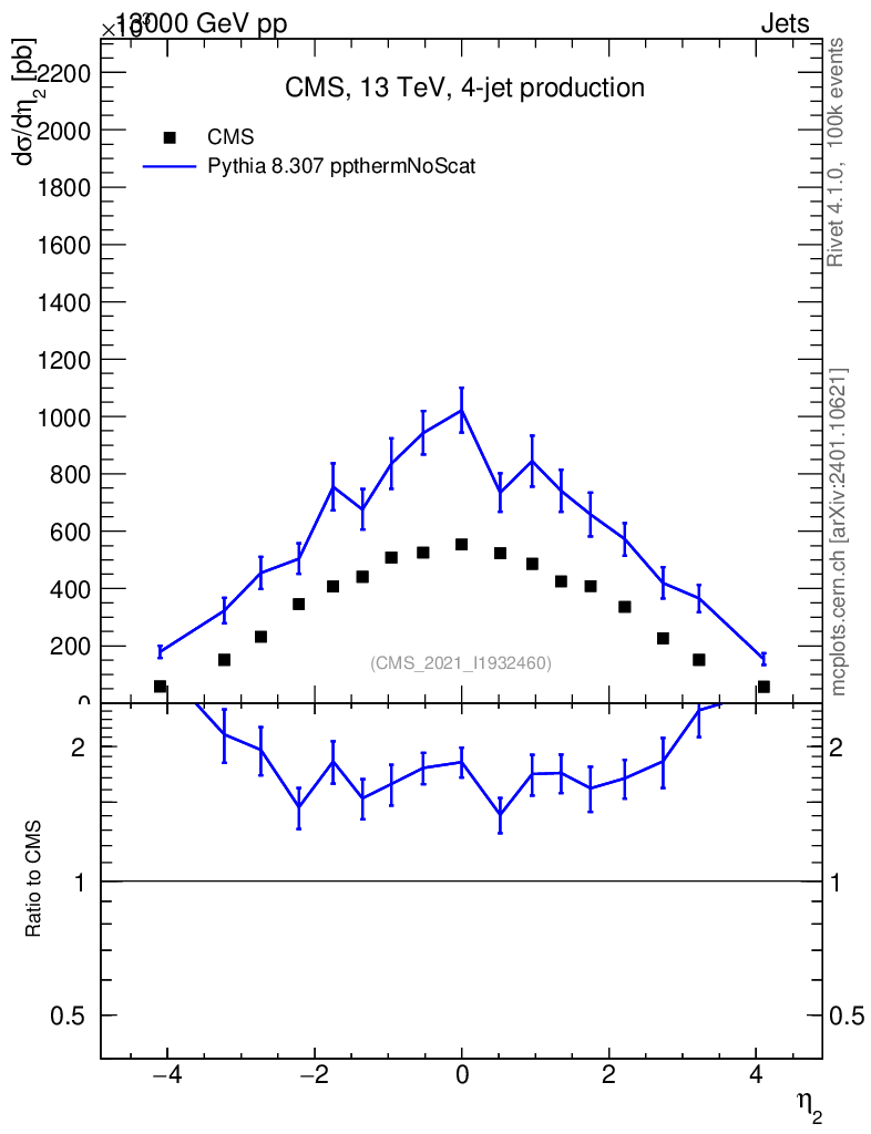 Lines: data, pythia8 8.307 ppthermNoScat |