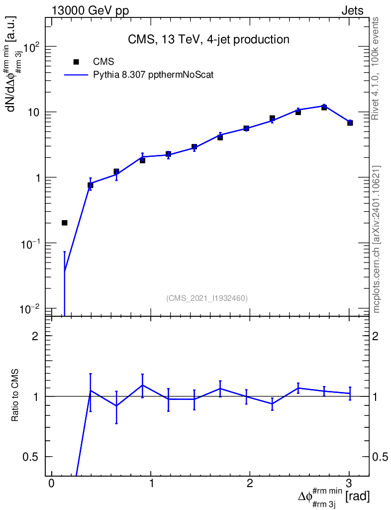 Lines: data, pythia8 8.307 ppthermNoScat |