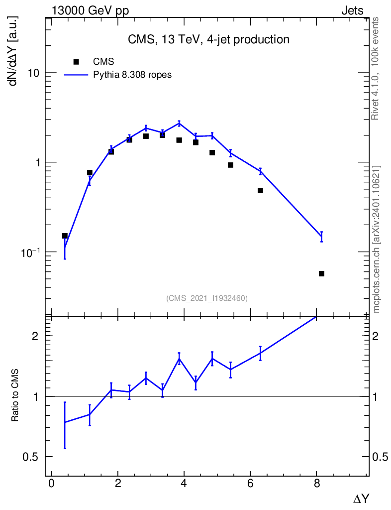 Lines: data, pythia8 8.308 ropes |