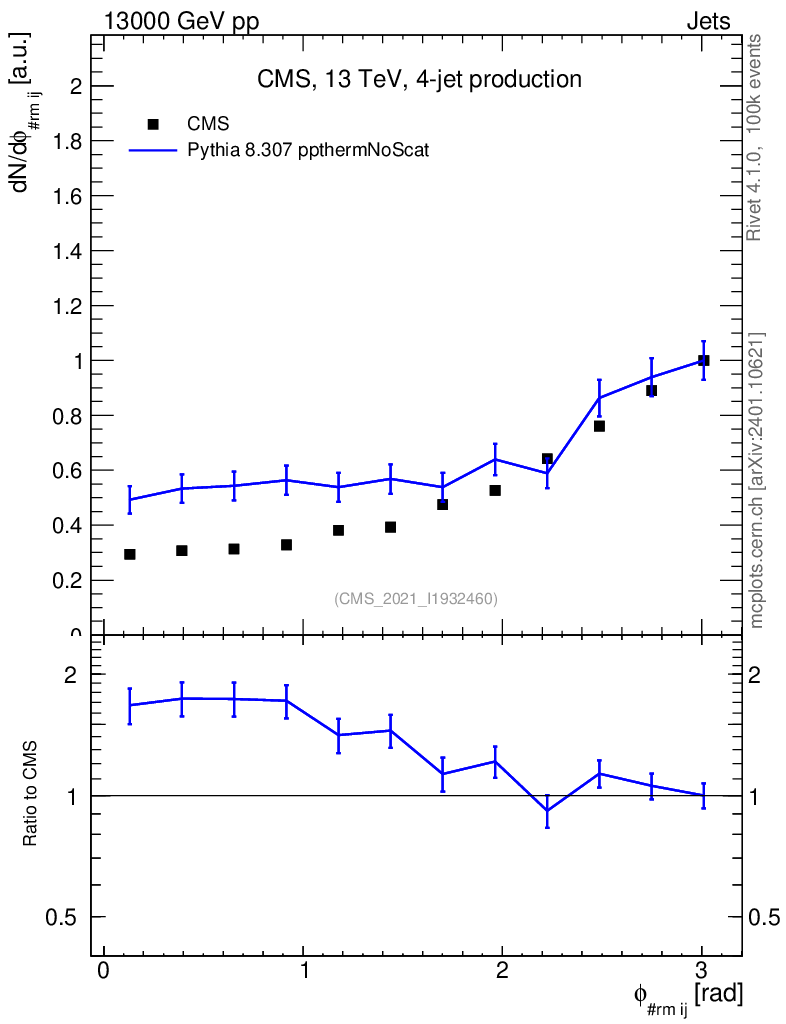 Lines: data, pythia8 8.307 ppthermNoScat |