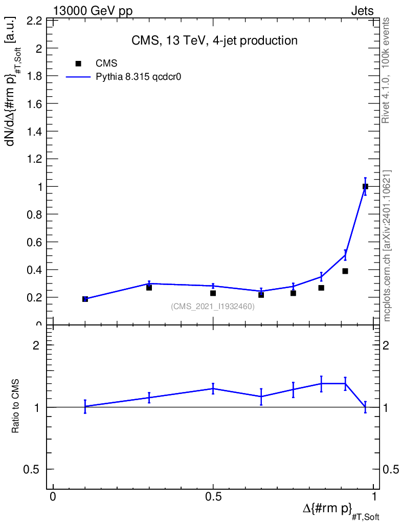 Lines: data, pythia8 8.315 qcdcr0 |