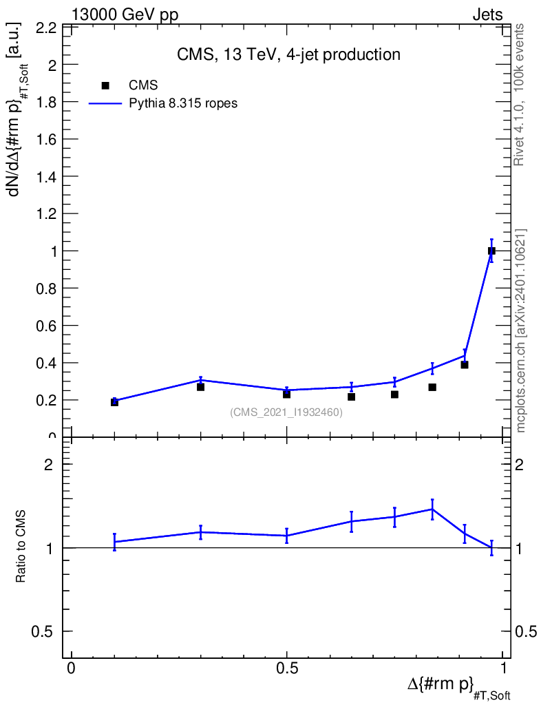 Lines: data, pythia8 8.315 ropes |