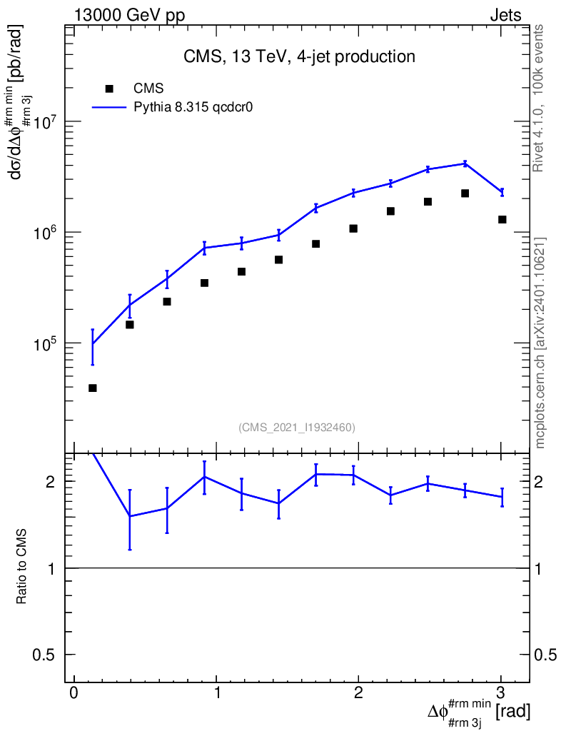 Lines: data, pythia8 8.315 qcdcr0 |