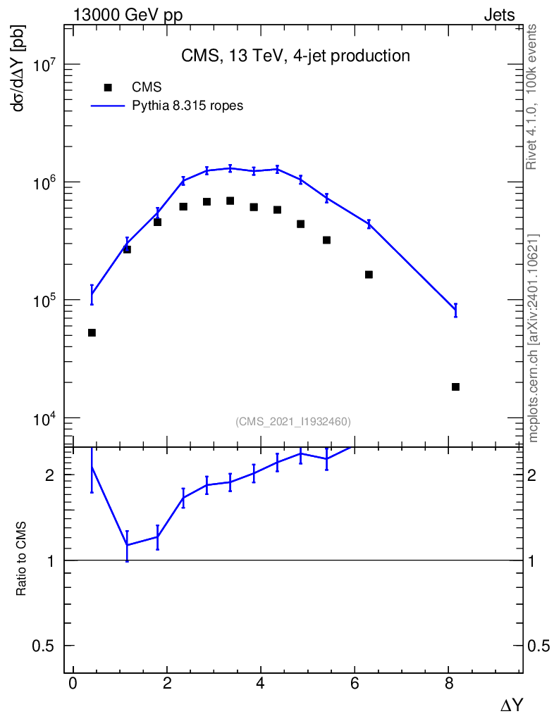 Lines: data, pythia8 8.315 ropes |