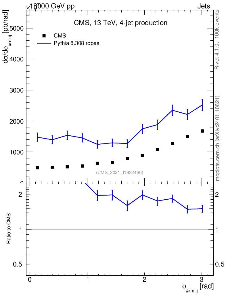 Lines: data, pythia8 8.308 ropes |